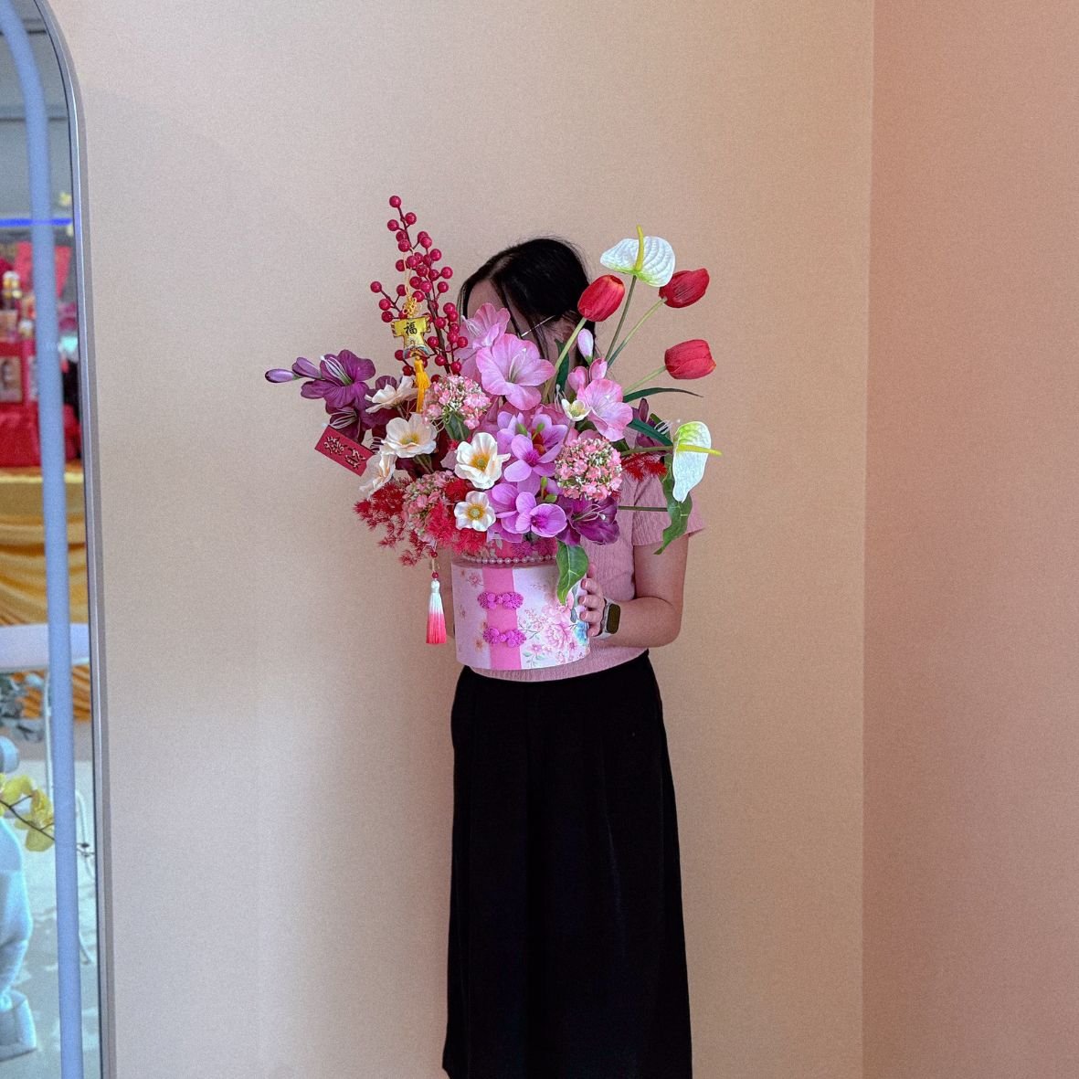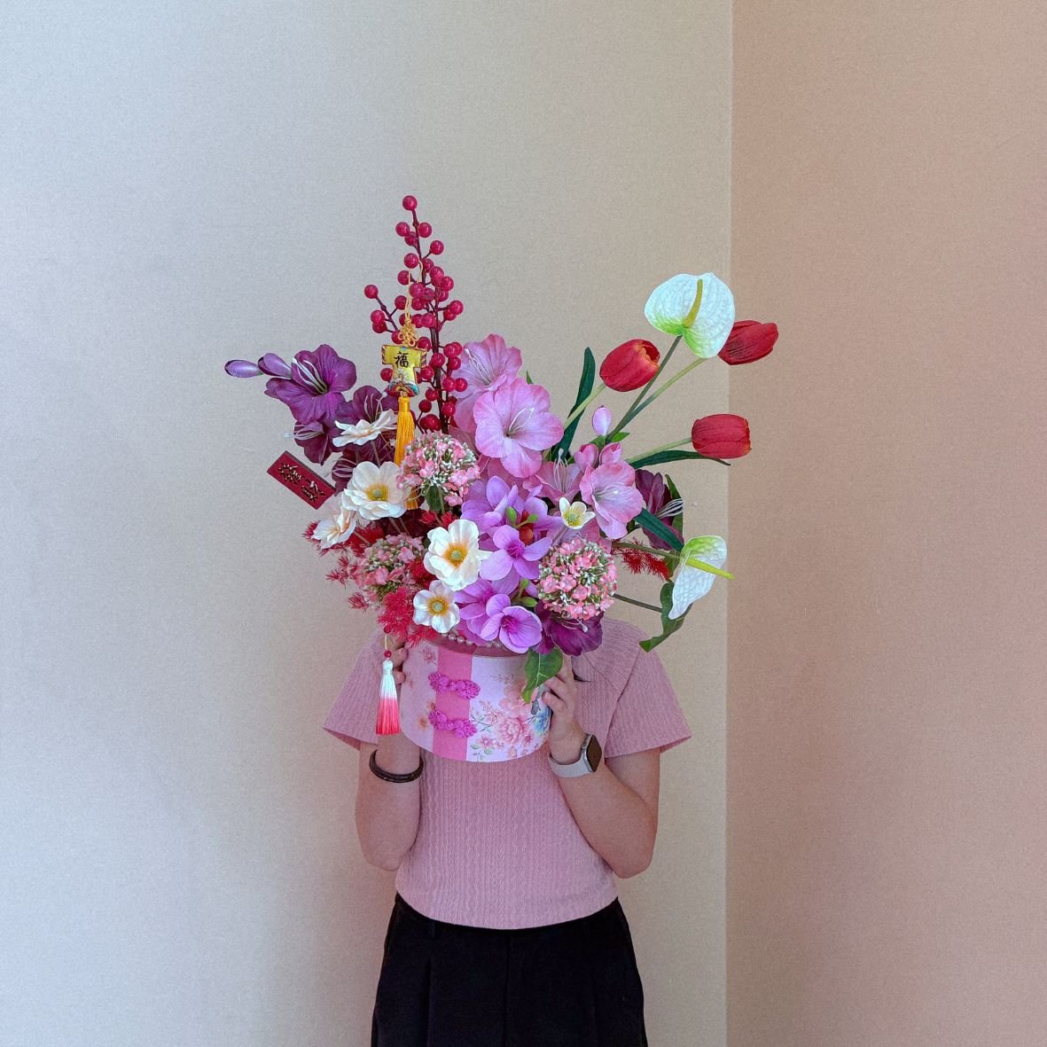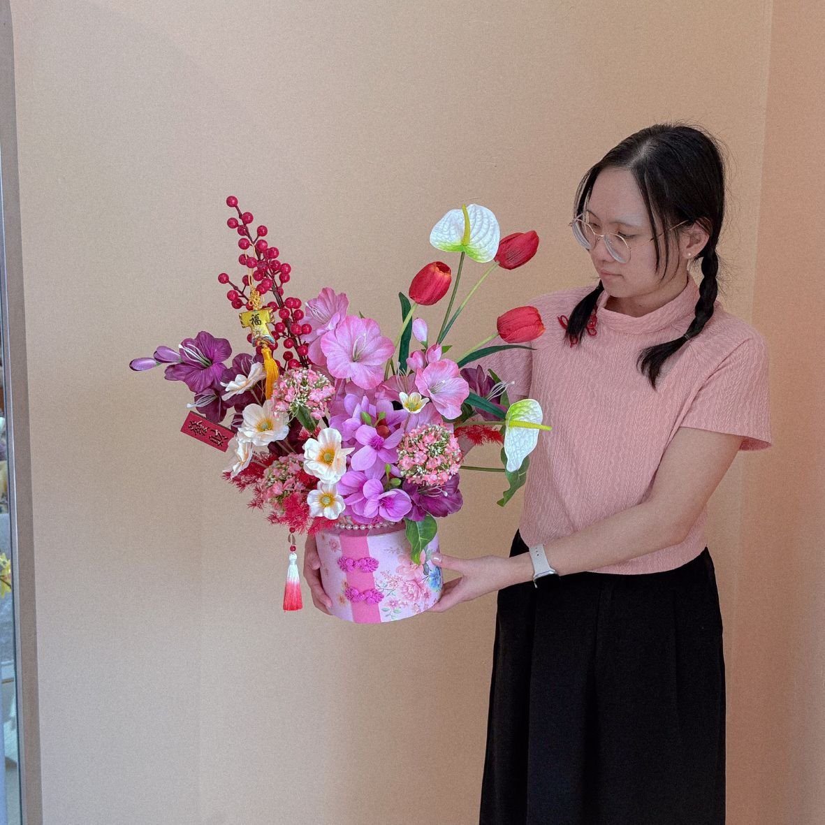 Please be note that this is fully 100% handmade flower/plant arrangement, therefore there must be slightly different in the physical product. (Random Choose CNY Deco)
