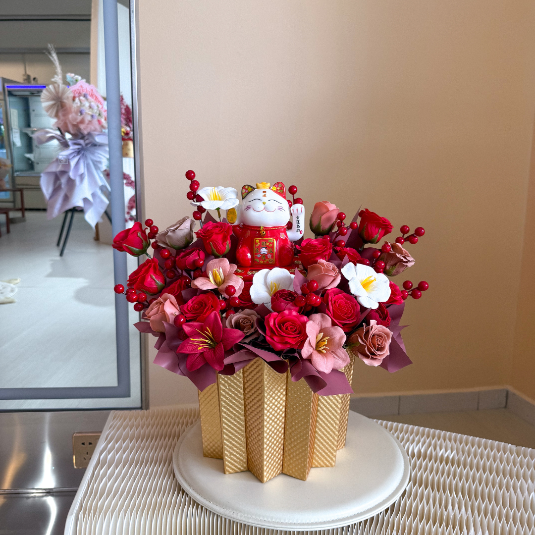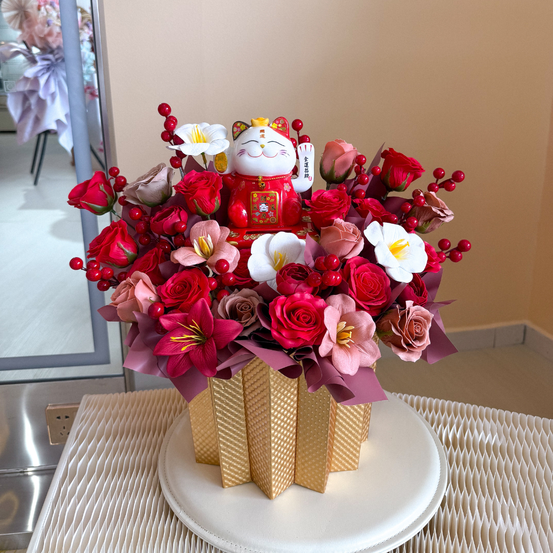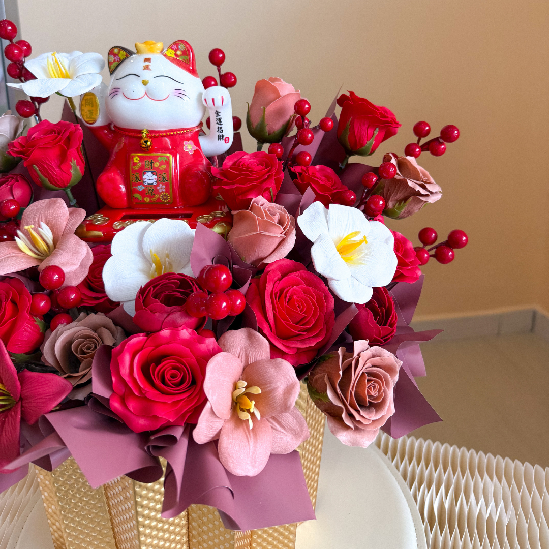 Categories: Congra Soap Flower, Congra Soap Flower Box, Fortune Cat, Non Balloon Product, Soap / Preserved Flower, Congratulatory Flower Arrangement