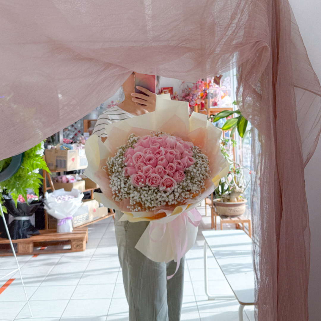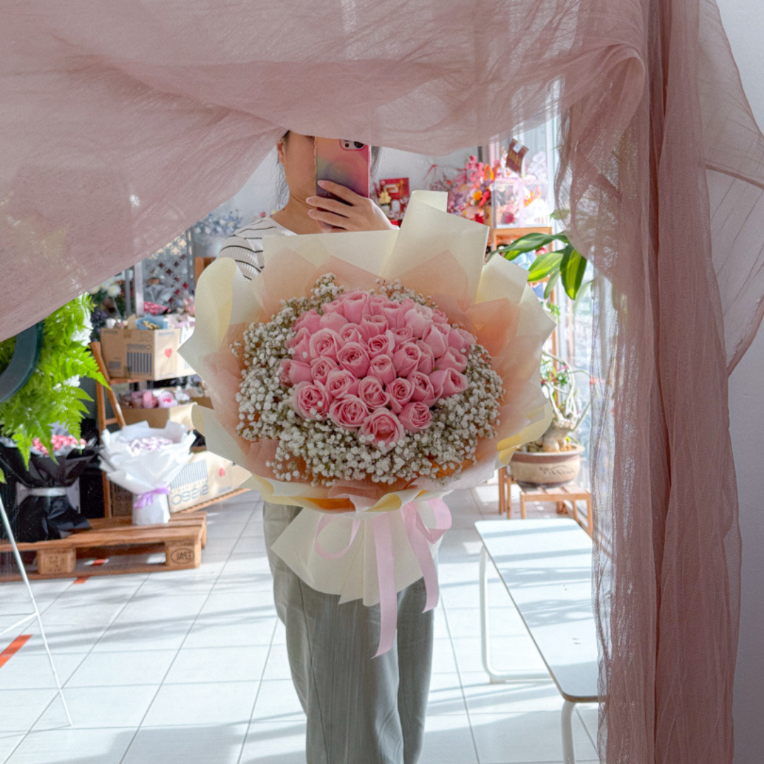 Categories: Anniversary, Baby Breath, Birthday, Friendship / Cheerful, Hand-Bouquet, HB Fresh Flower, Large Bouquet, Mix Flower, Non Balloon Product, Non Graduation bear, RM 308 - RM 408, Rose, Same Day Delivery