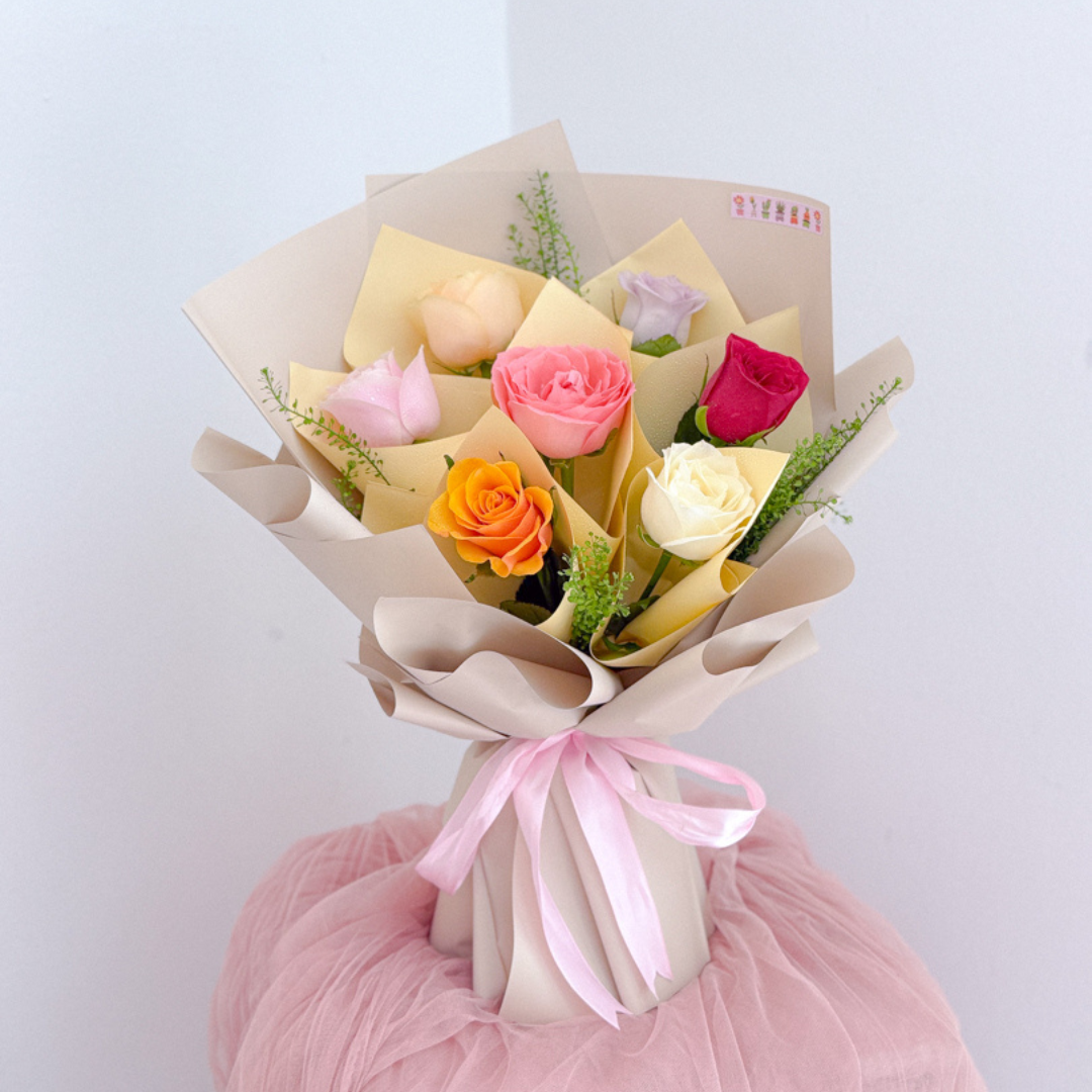 - Flower included: 7 Rose ( Red, Avalance, Cherry Pink, Purple, Champagne, Orange and White)