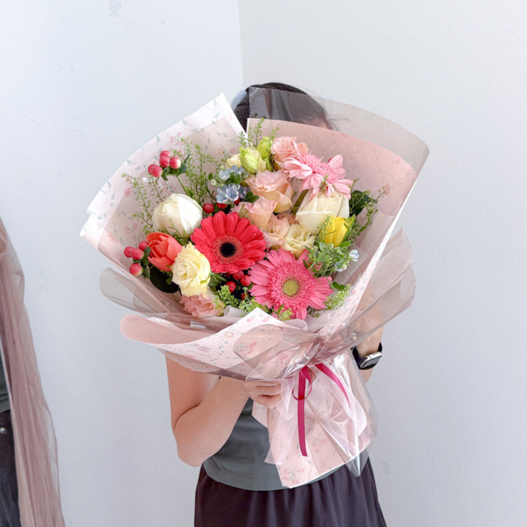 Categories: Anniversary, Birthday, Friendship / Cheerful, Gerbera, Hand-Bouquet, HB Fresh Flower, Medium Bouquet, Mix Flower, Non Balloon Product, Non Graduation bear, RM 208- RM 308, Rose, Same Day Delivery, Tulip
