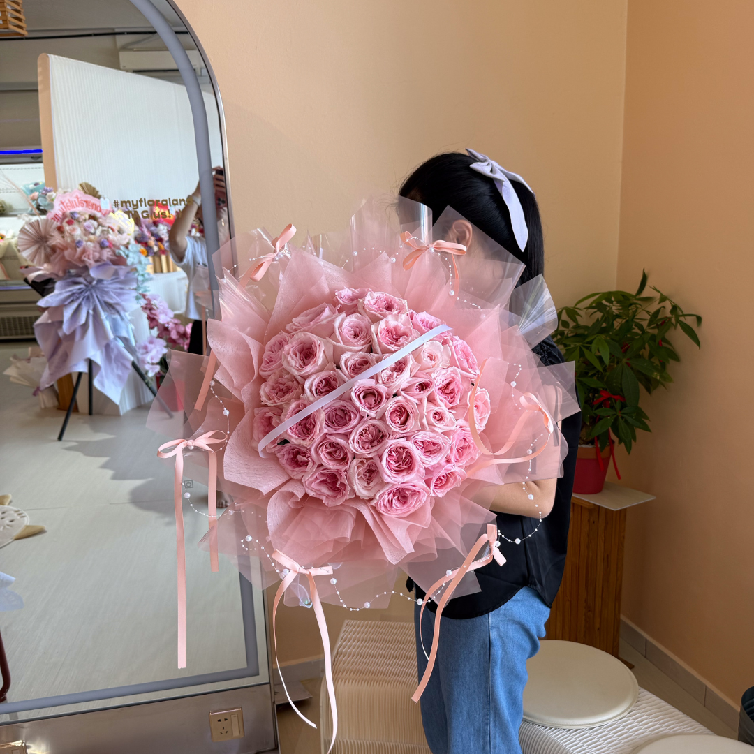 • Flower included: Rose Pink (33 stalks) Available in other color rose.