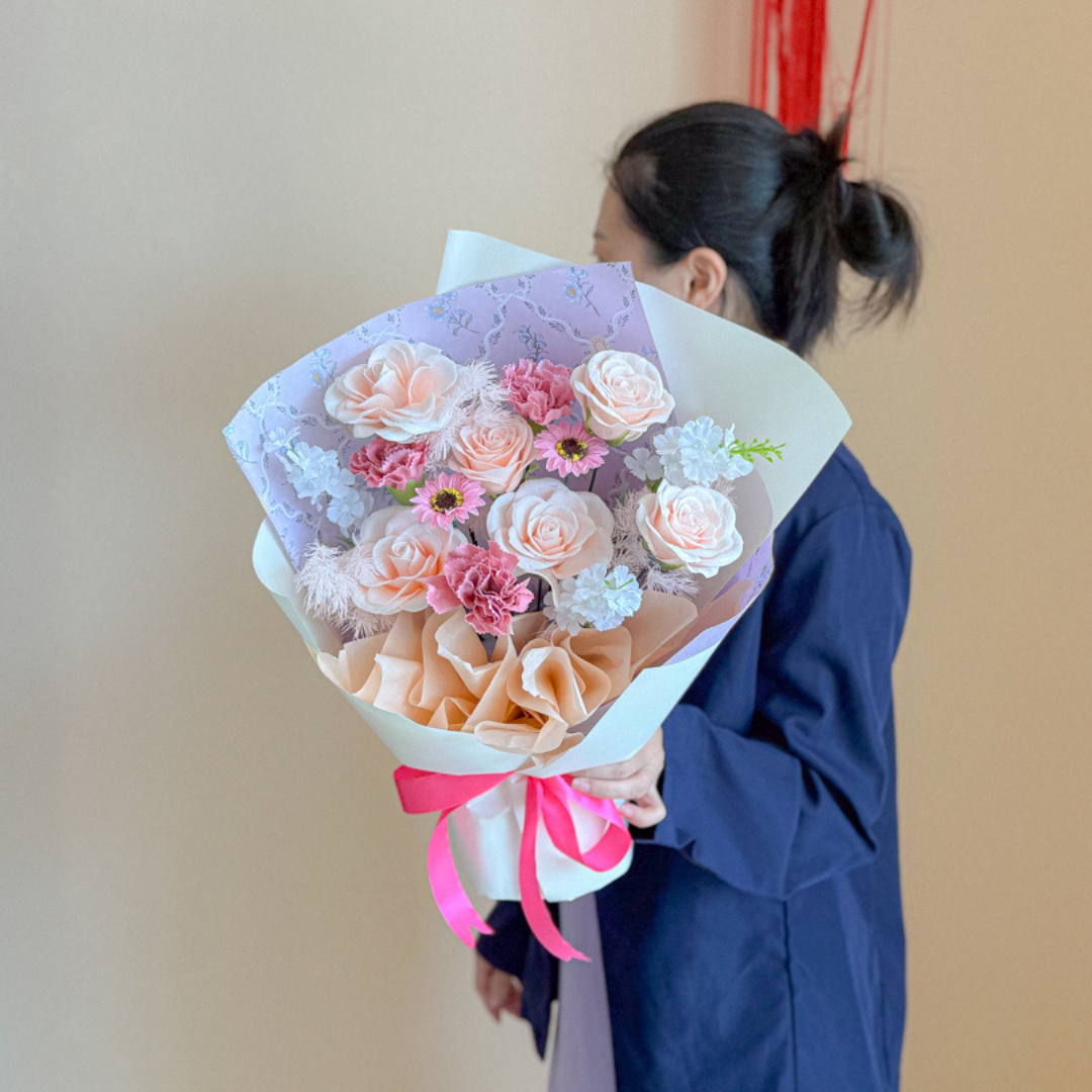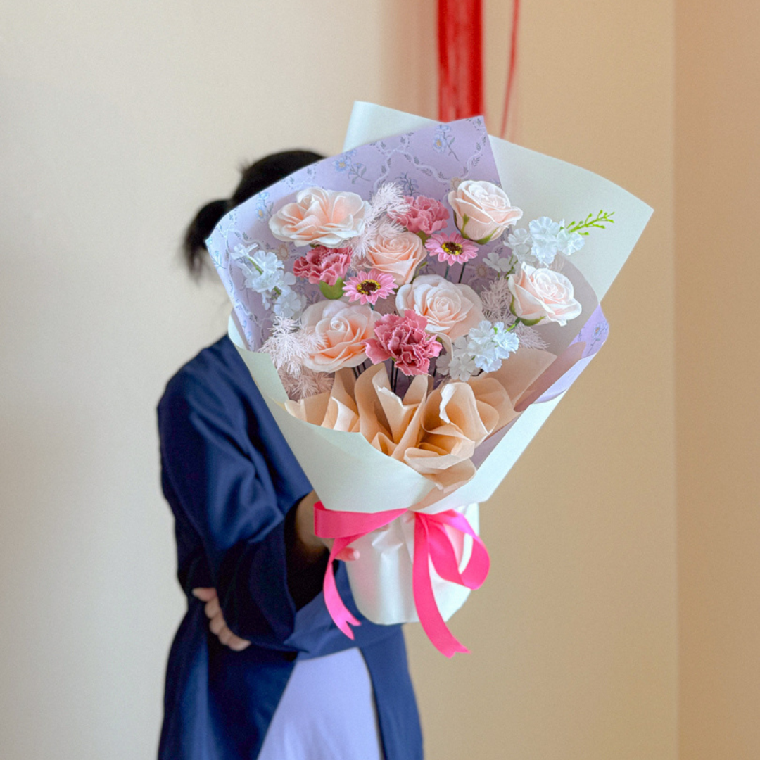 Soap flower is an ordinary bar of soap customized hand carved into a delicate of flower. Its look like fresh flower and lasting period is up to 2 years. You can use it as a room decoration or hand wash.