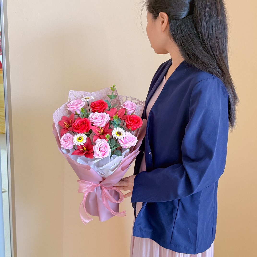 Soap flower is an ordinary bar of soap customized hand carved into a delicate of flower. Its look like fresh flower and lasting period is up to 2 years. You can use it as a room decoration or hand wash.