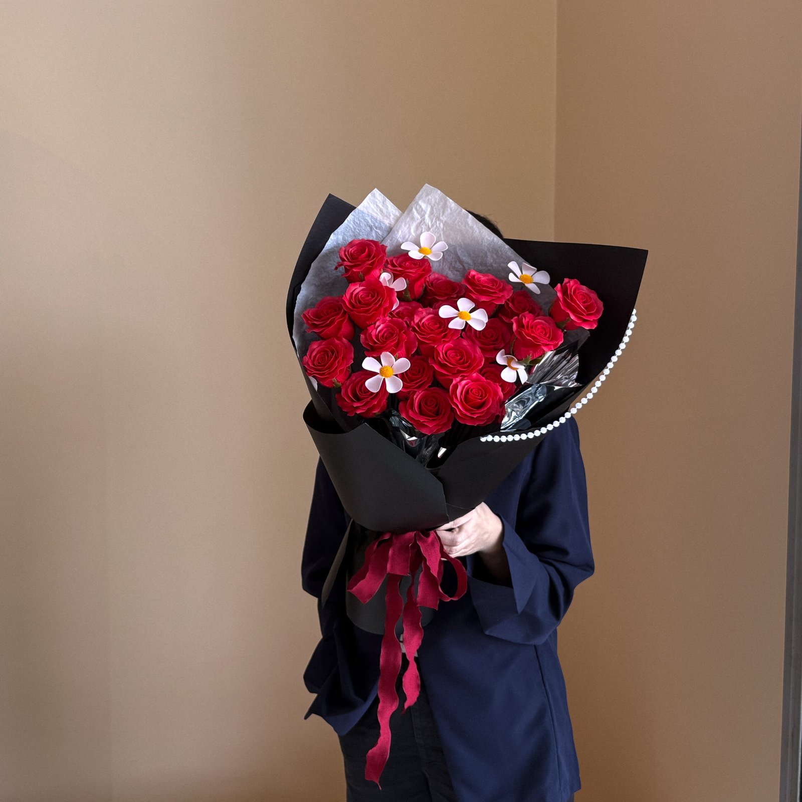 Standard: Mix Soap Flower, total 19 flowers. Combination of Rose Red, filled with small flower